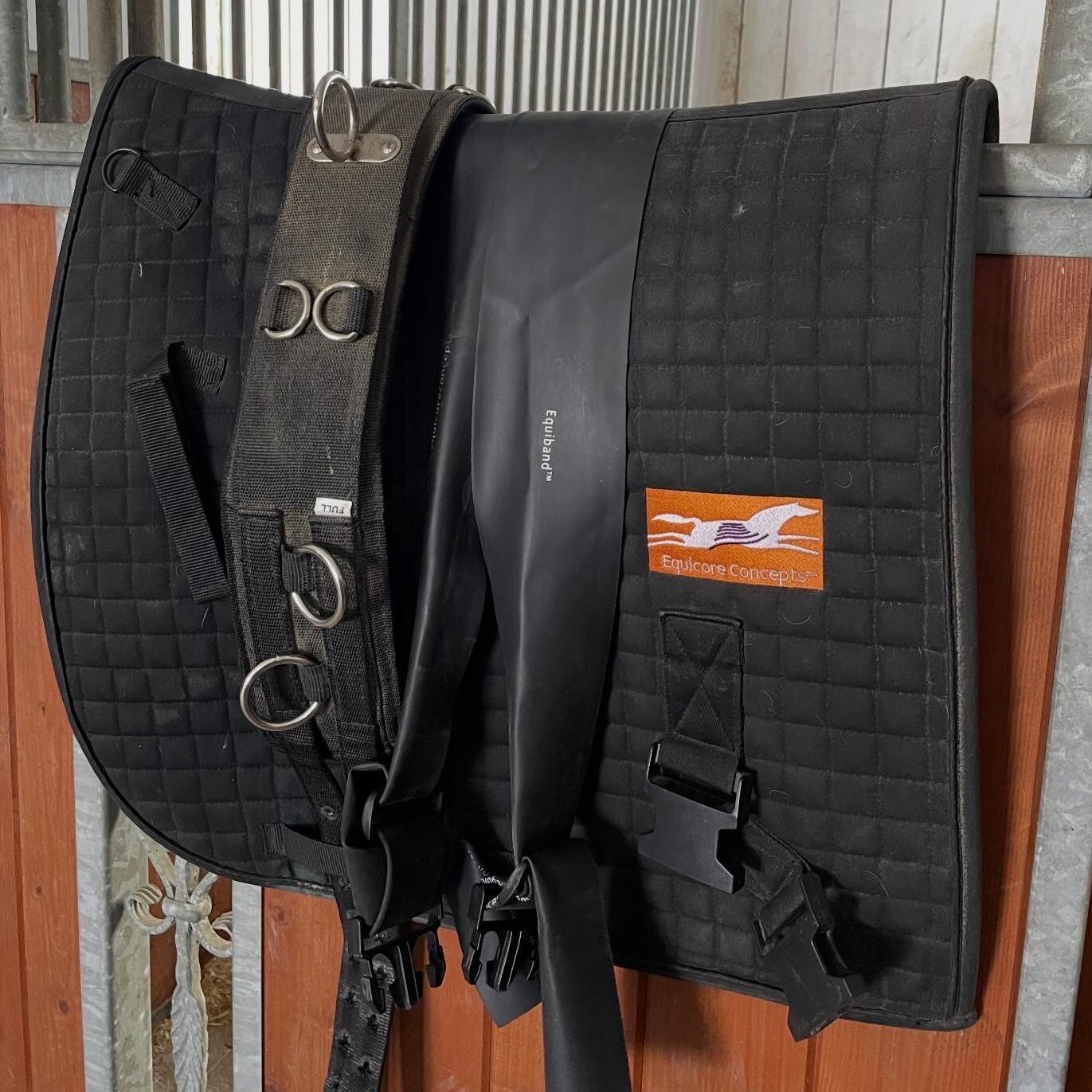 Equiband är ett terapeutiskt hjälpmedel som är väldigt effektivt att använda vid träning av hästen. Den har två band som kan spännas under magen och runt bakbenen. Den hjälper hästen att arbeta korrekt genom att aktivera underlinjen och positionera bäcken och bakben för att hitta sin bärighet bakifrån.